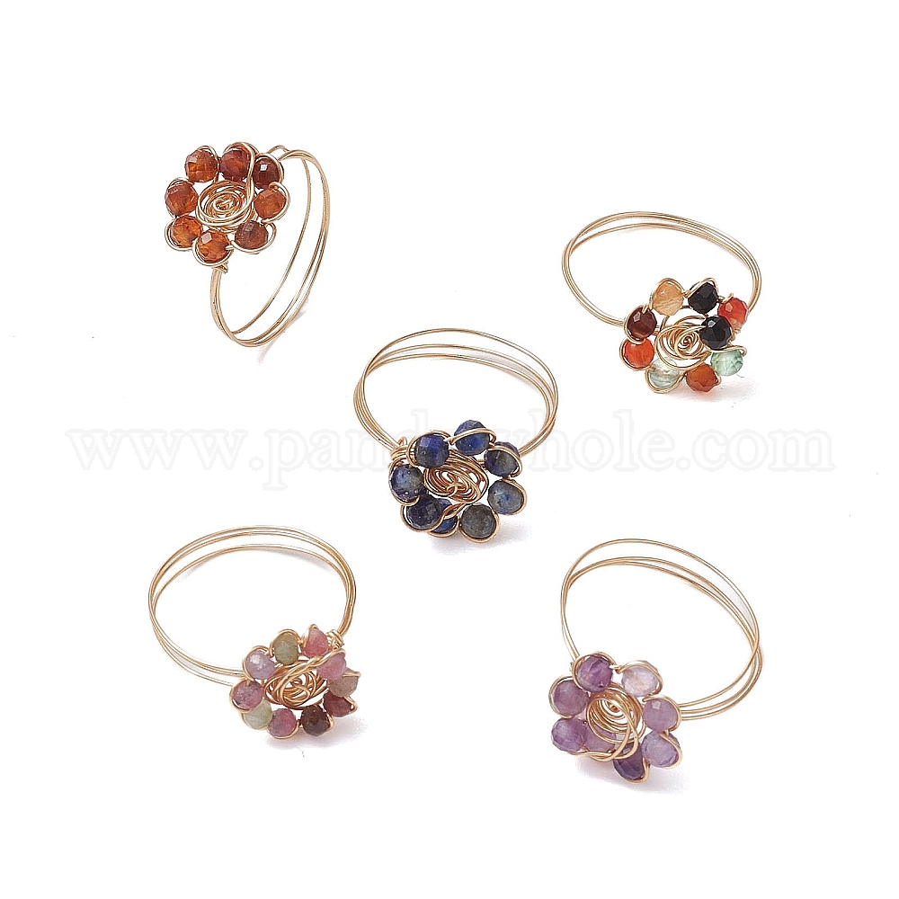 Кольца из натуральных драгоценных камней с цветком, женское кольцо из медной проволоки