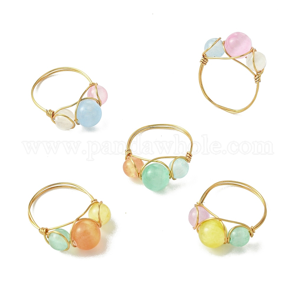 Женские кольца на палец с бусинами из медной проволоки, окрашенные из натурального селенита