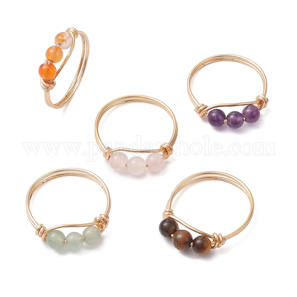 Кольца на палец с круглыми бусинами и натуральным драгоценным камнем из медной проволоки для женщин