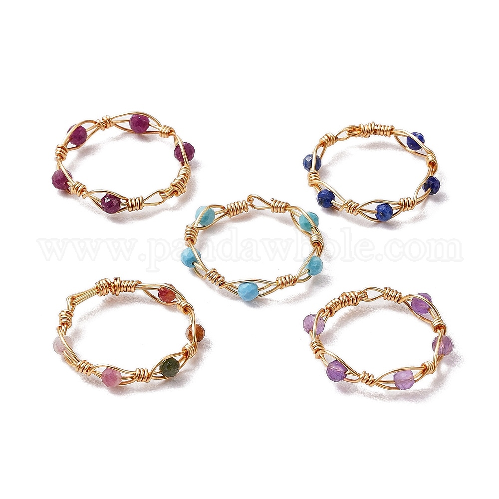 Кольцо на палец с круглым натуральным рубином, магнезитом, турмалином, аметистом и лазуритом, женское кольцо из медной проволоки