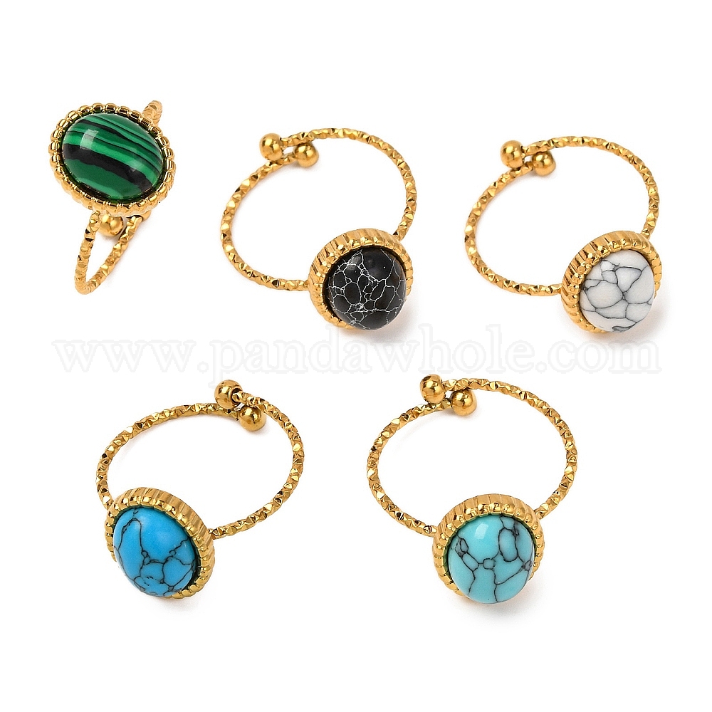 Овальные кольца из синтетических драгоценных камней, золотистый тон 304 манжеты из нержавеющей стали для женщин