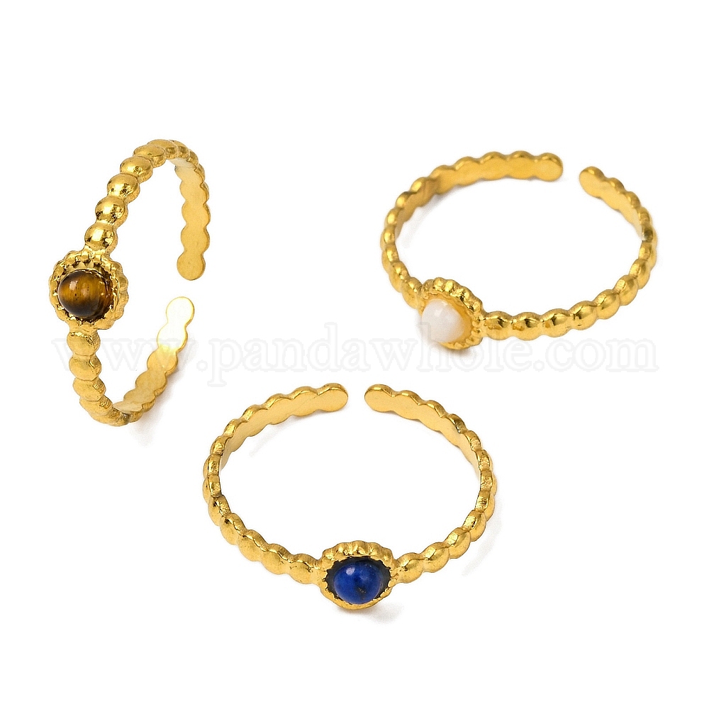 Круглые кольца на палец из натуральных драгоценных камней, золотистый тон 304 манжеты из нержавеющей стали для женщин