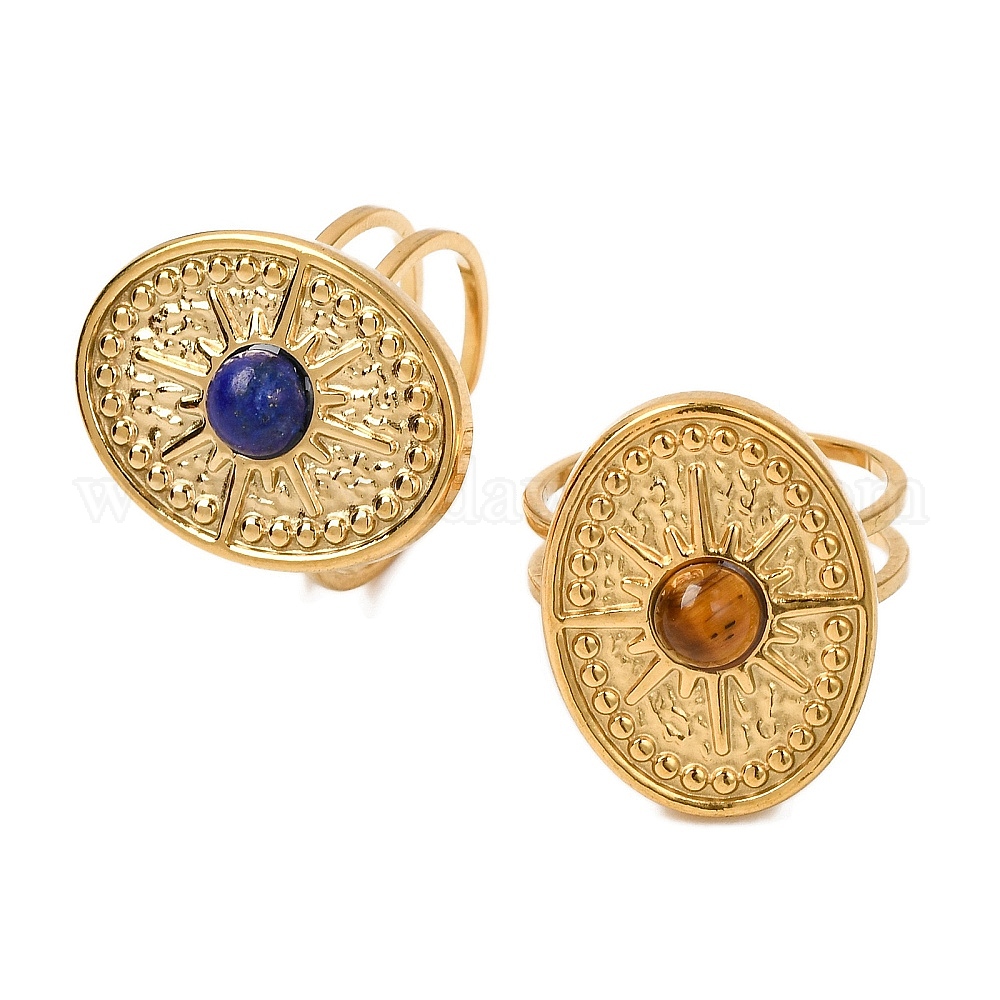 Овальные кольца с натуральными драгоценными камнями в форме солнца, золотистый тон 304 открытые манжеты из нержавеющей стали для женщин
