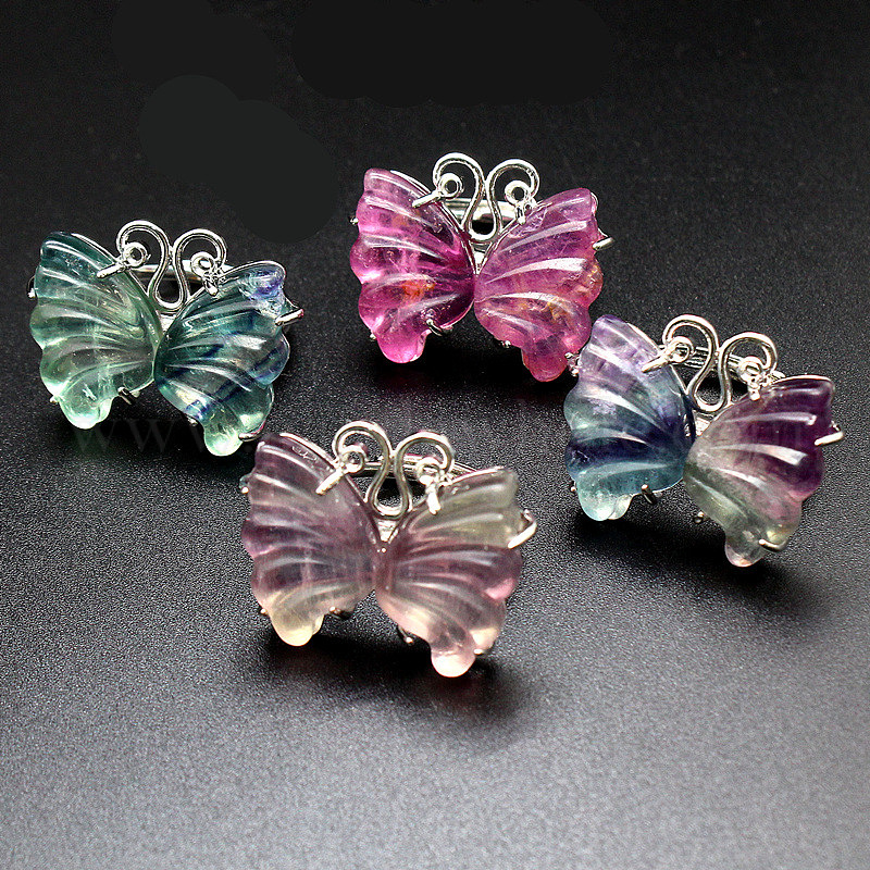Регулируемые кольца из натурального флюорита в форме бабочки, металлические украшения для женщин