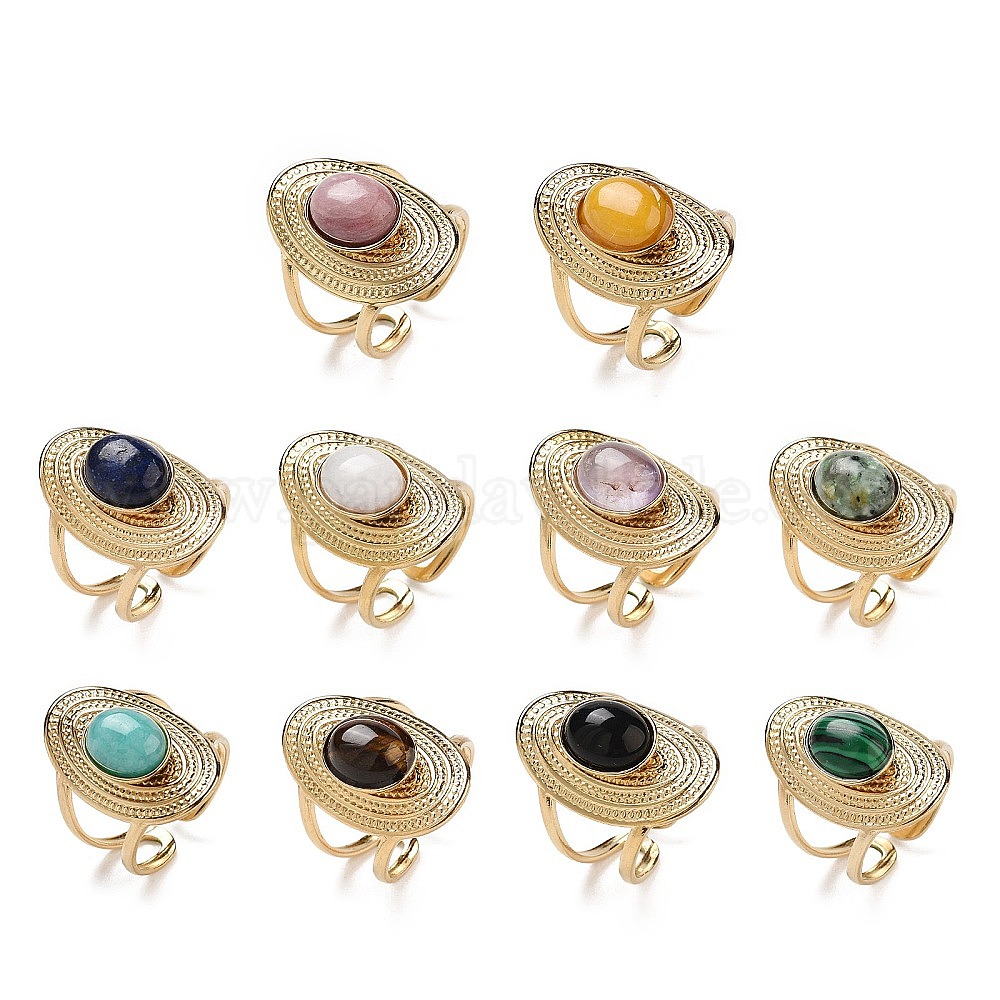 Ионное покрытие (ip) 304 открытые манжеты из нержавеющей стали, Женское кольцо с натуральными и синтетическими драгоценными камнями, овальные, реальный 18 k позолоченный