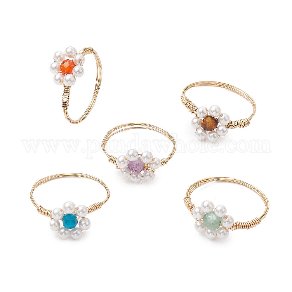Кольца с натуральным цветочным аметистом, красным агатом, зеленым авантюрином, тигровым глазом, апатитом и ракушечным жемчугом, манжеты из медной проволоки для женщин