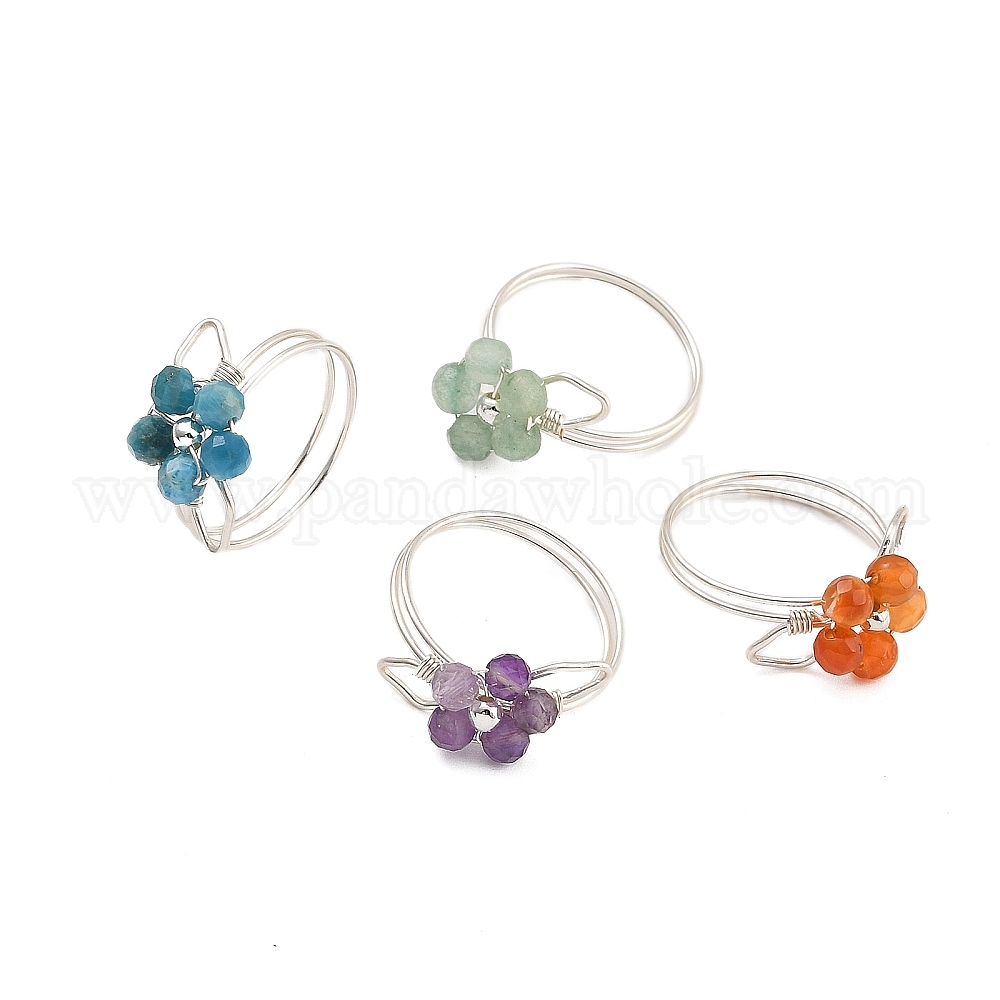 Кольца с цветочным натуральным зеленым авантюрином, аметистом, сердоликом и апатитом, украшения из медной проволоки