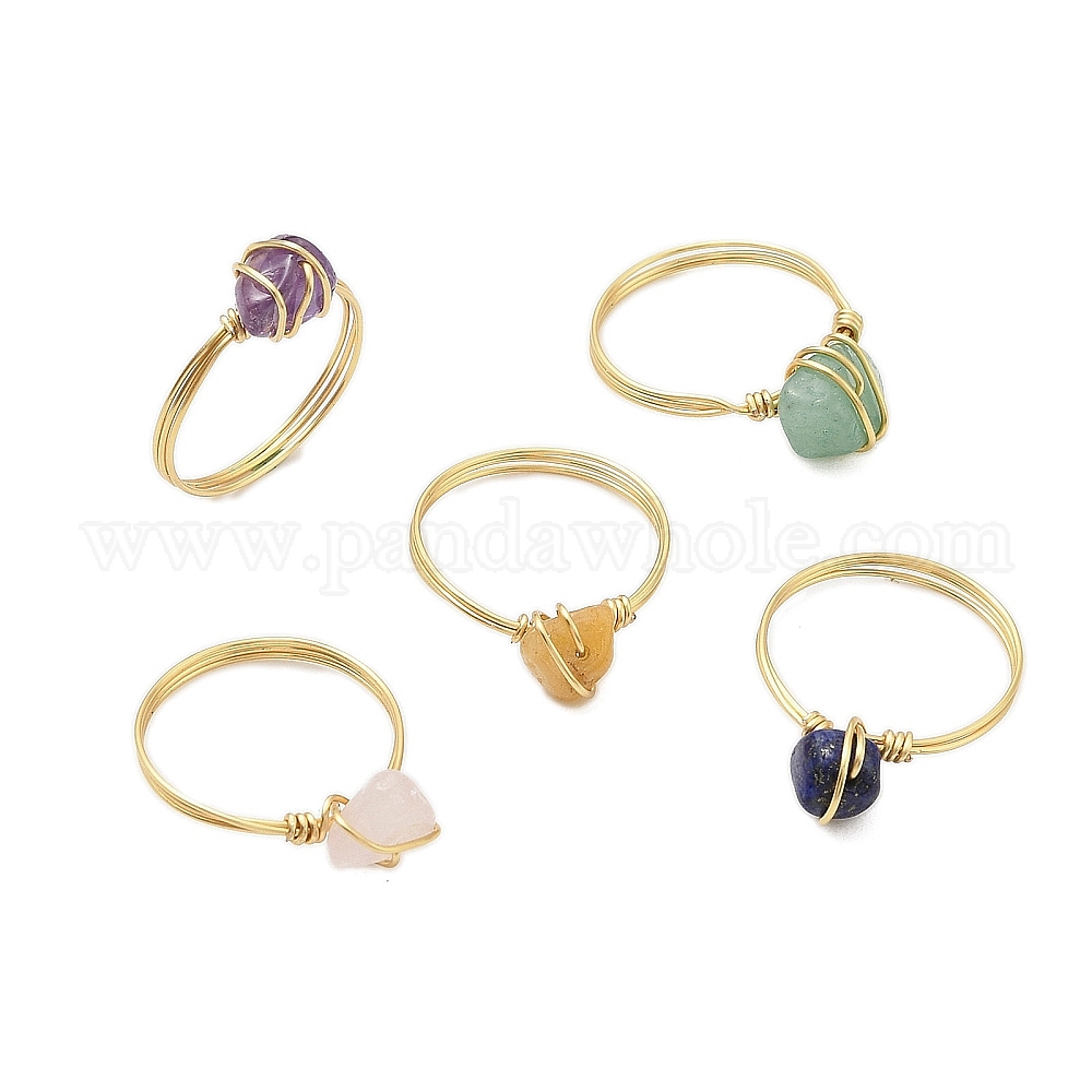 Кольца для женщин с натуральным кварцевым кристаллом, розовым кварцем, зеленым авантюрином, лазуритом и топазом, самородками нефрита, обмотанные медной проволокой