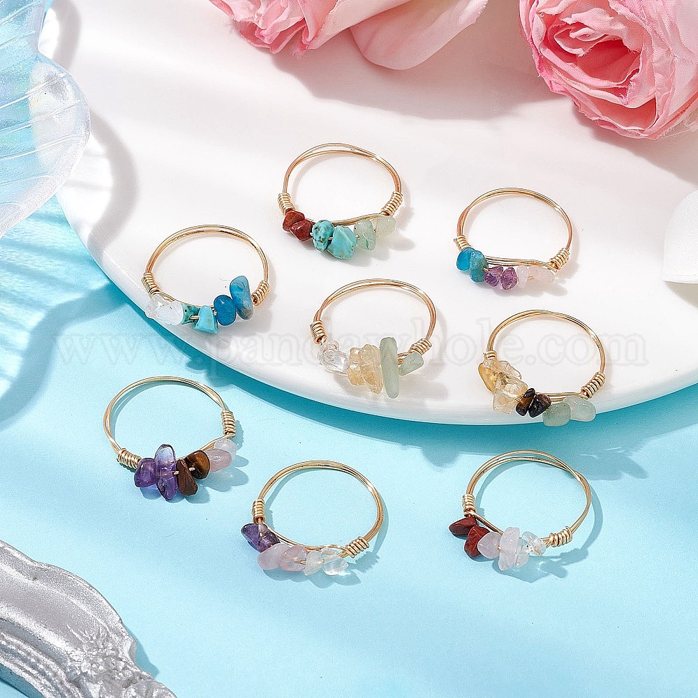 Кольца для пальцев с натуральными драгоценными камнями, золотые тона медной проволоки для женщин
