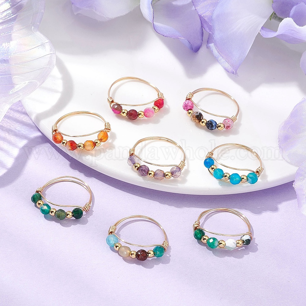 Круглые натуральные бусины агата кольца для пальцев, латунные кольца для женщины