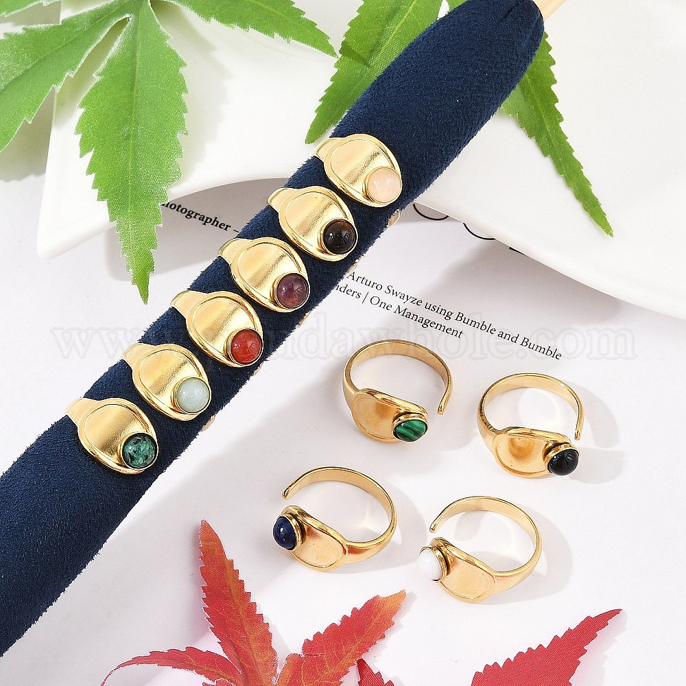 • Смешанные камни Овальные 304 открытые манжеты из нержавеющей стали, кольцо из натурального камня для женщин, реальный 18 k позолоченный, ионное покрытие (ip), размер США 7 1/4 (17.5 мм)