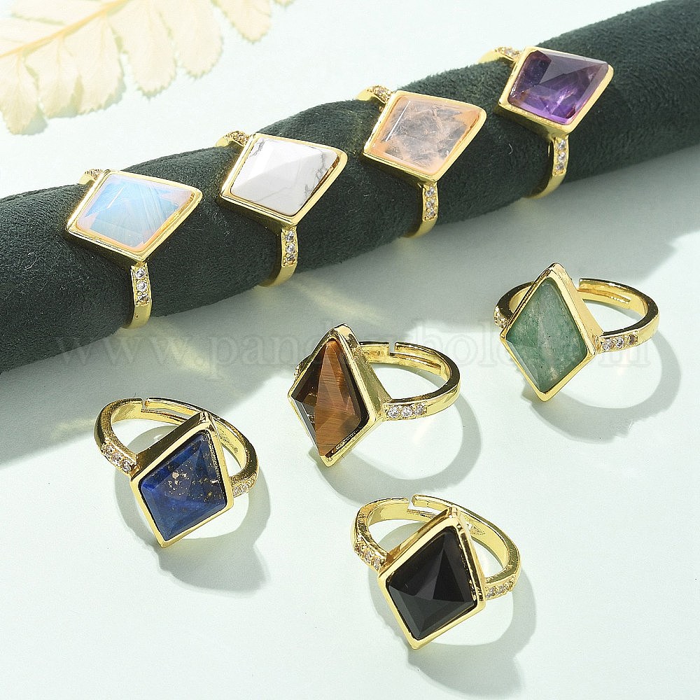 Кольца с ромбами из натуральных и синтетических драгоценных камней, Кольца-манжеты из латуни золотистого тона с кубическим цирконием, стойки покрытие, долговечный, без свинца и без кадмия (02ZXRN)