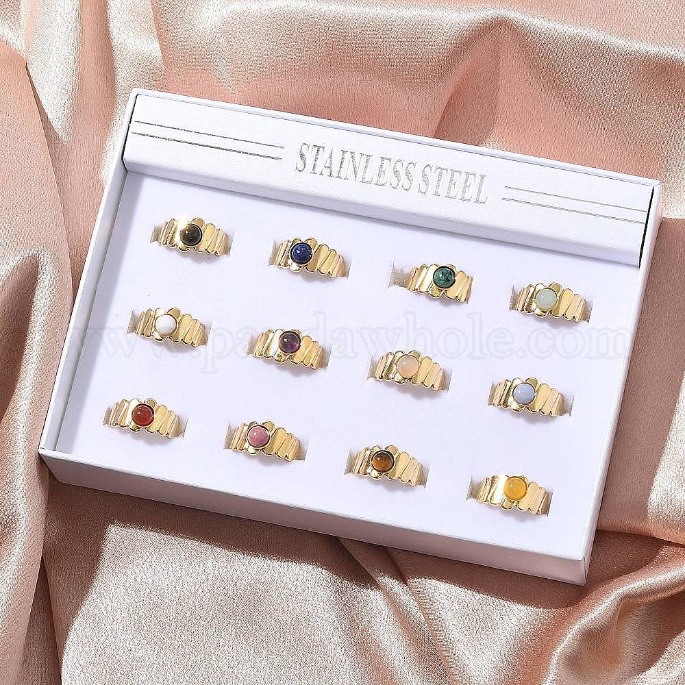 Круглые кольца из смешанных натуральных камней, 304 из нержавеющей стали манжеты кольца, реальный 18 k позолоченный, ионное покрытие (ip)