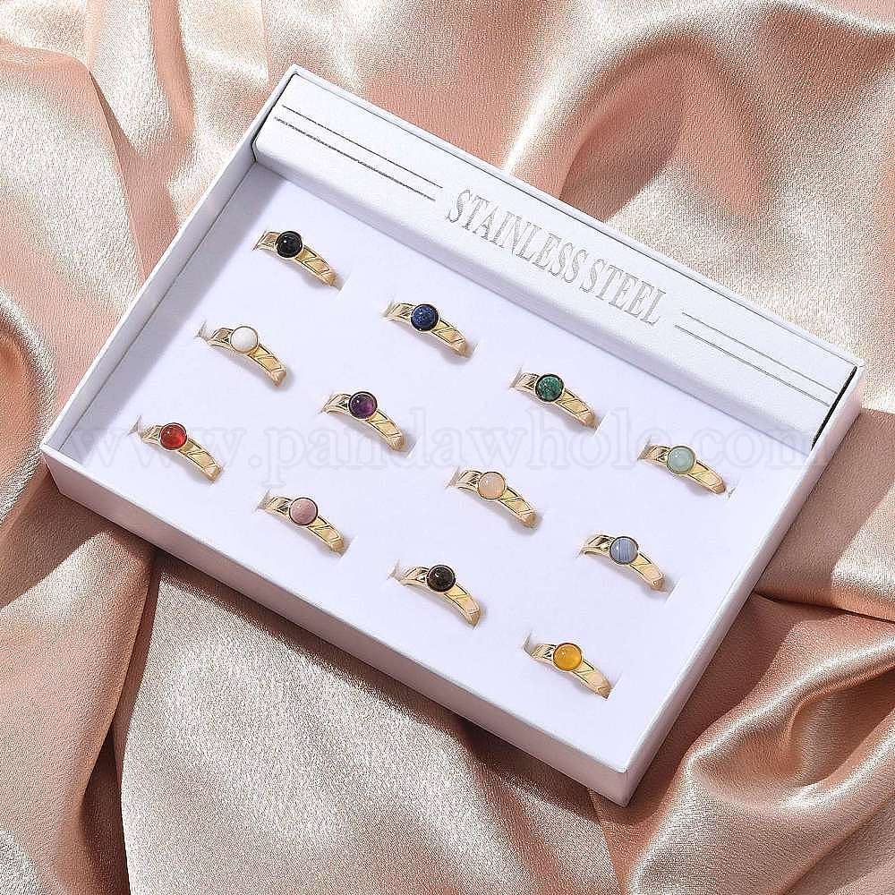 Круглые кольца из смешанных натуральных камней, 304 из нержавеющей стали манжеты кольца, реальный 18 k позолоченный, ионное покрытие (ip)