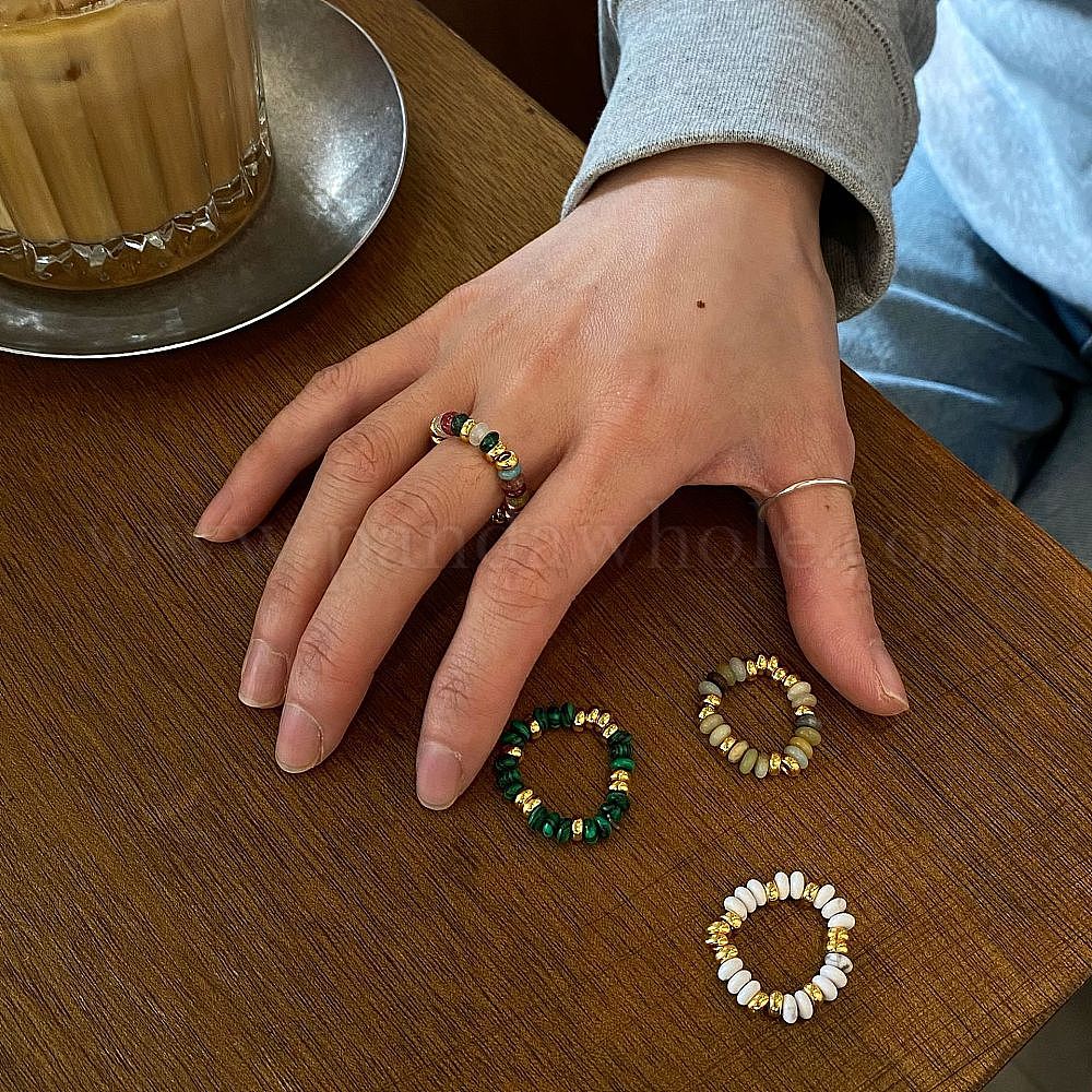 925 Кольца из стерлингового серебра с натуральными и синтетическими камнями в форме ронделей и бусинами, золотые