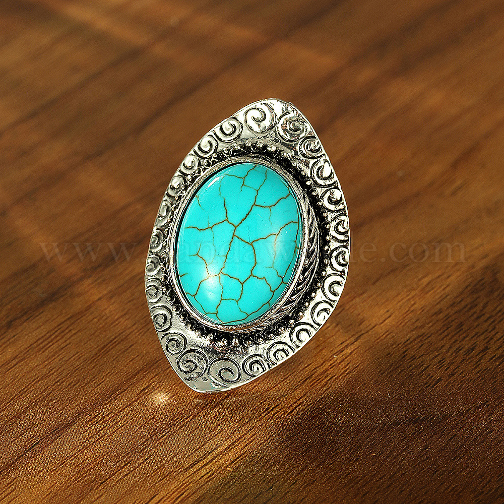 Овальные кольца из синтетической бирюзы в винтажном стиле, материал из цинкового сплава для праздничного подарка