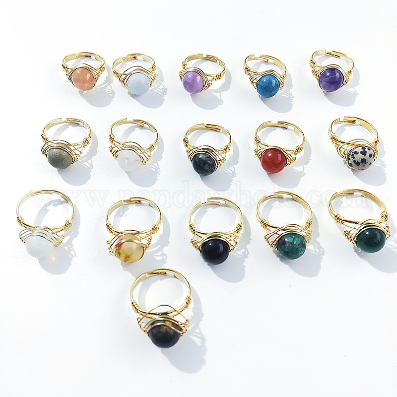 Кольца для пальцев из натуральных драгоценных камней, обернутых проволокой, латунные регулируемые кольца, золотые