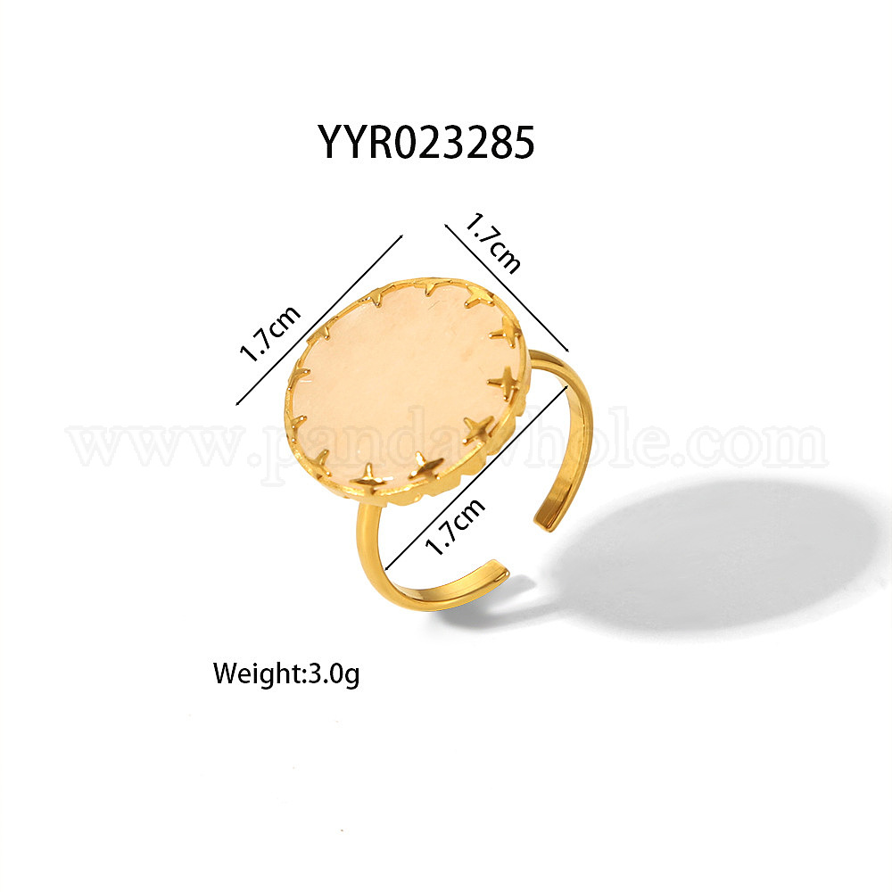 Плоские круглые кольца из натурального розового кварца, открытые манжеты из нержавеющей стали, золотые