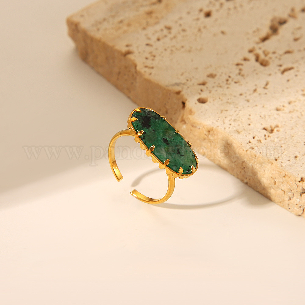 Овальные кольца из синтетической бирюзы, манжеты из нержавеющей стали, золотые