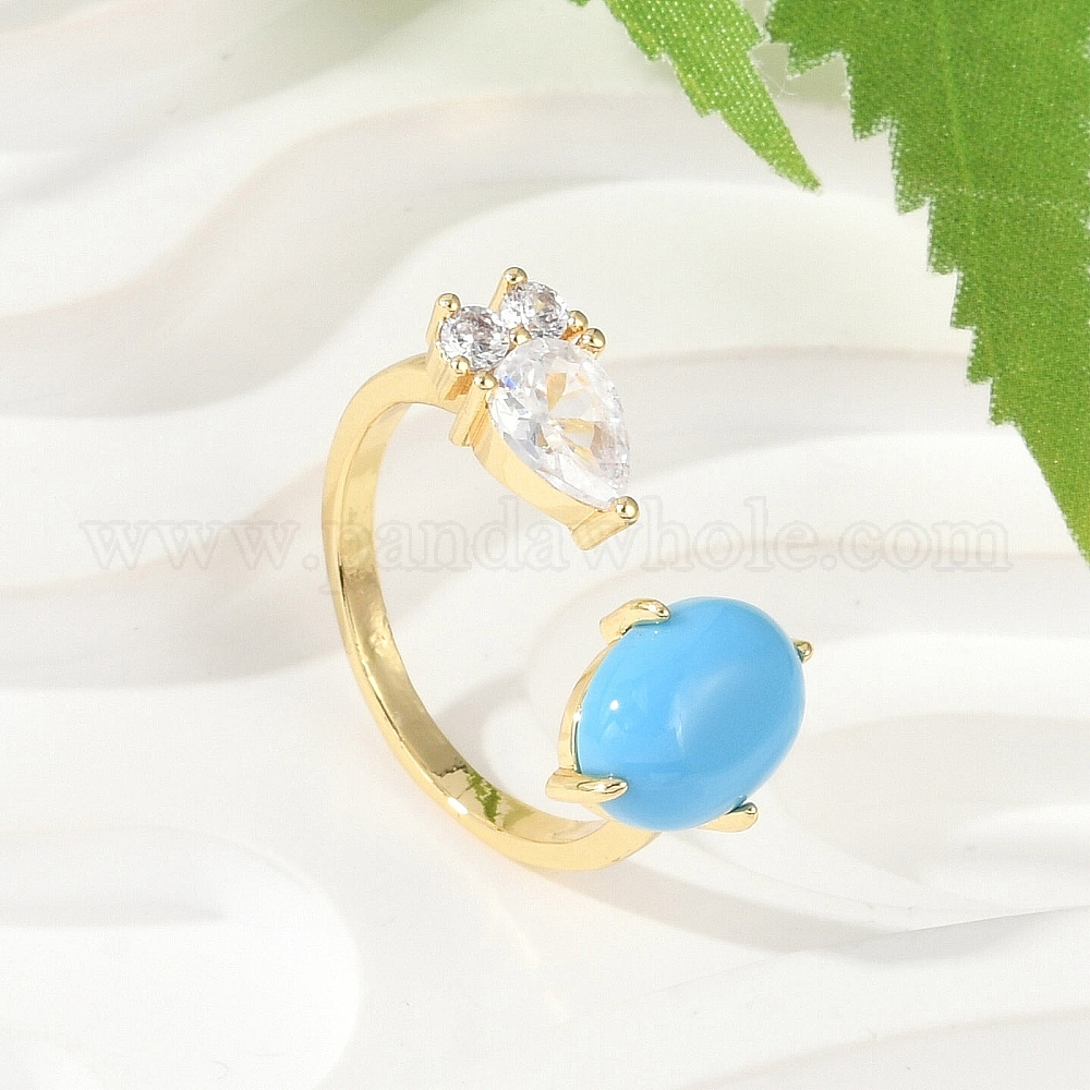 Овальные кольца из синтетической бирюзы, кольца-манжеты из латуни с микропаве из кубического циркония, долговечный, без свинца и без кадмия