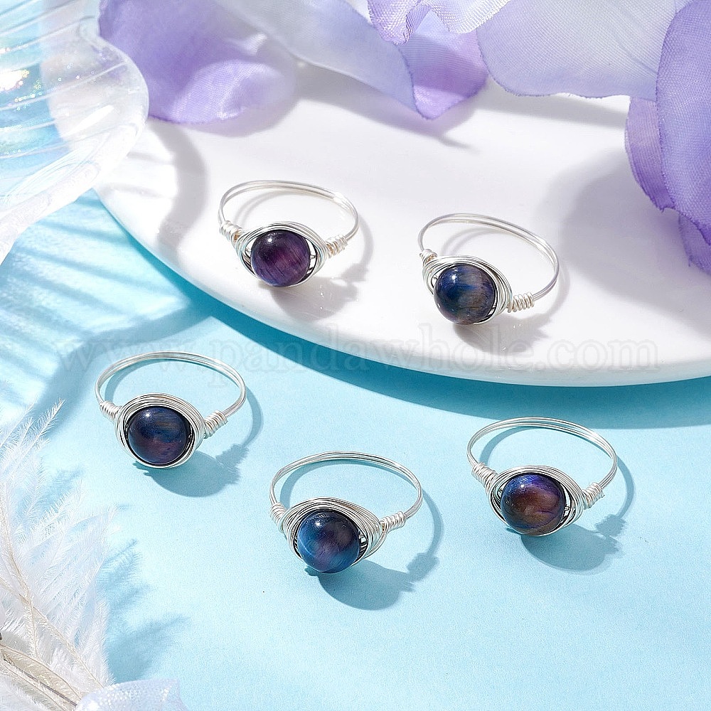 Круглые натуральные радужные кольца с тигровым глазом, кольца из медной проволоки