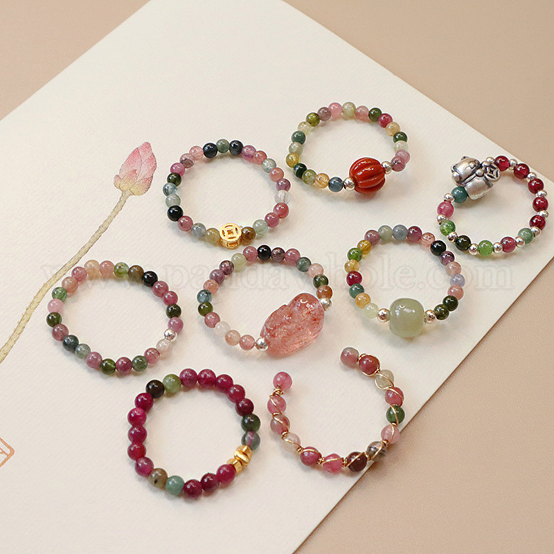 Кольца для пальцев из натурального турмалина, клубничного кварца и нефрита-хотиана
