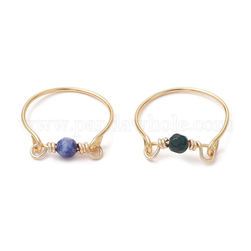 2 шт. экологически чистые медные проволочные кольца с натуральным агатом и содалитом