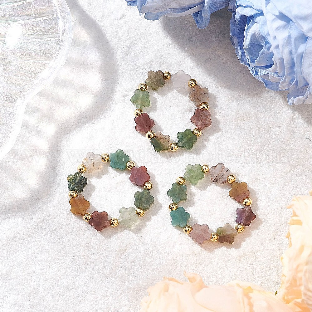 3шт. натуральные индийские агатовые кольца, цветок, с латунной бисера