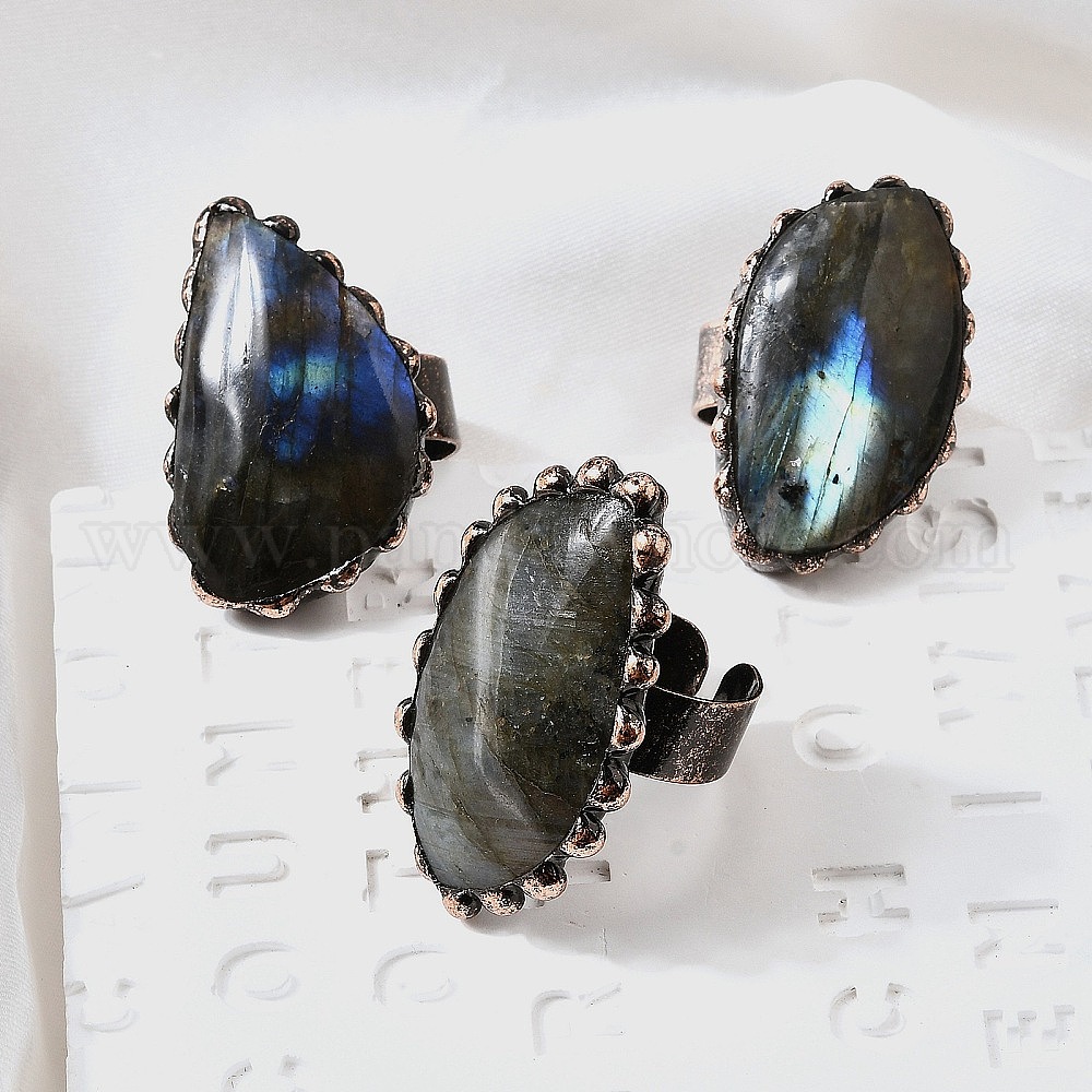 • Самородки Кольца-манжеты из натурального лабрадорита и латуни, самородки, внутренний диаметр: 18~18.5 мм