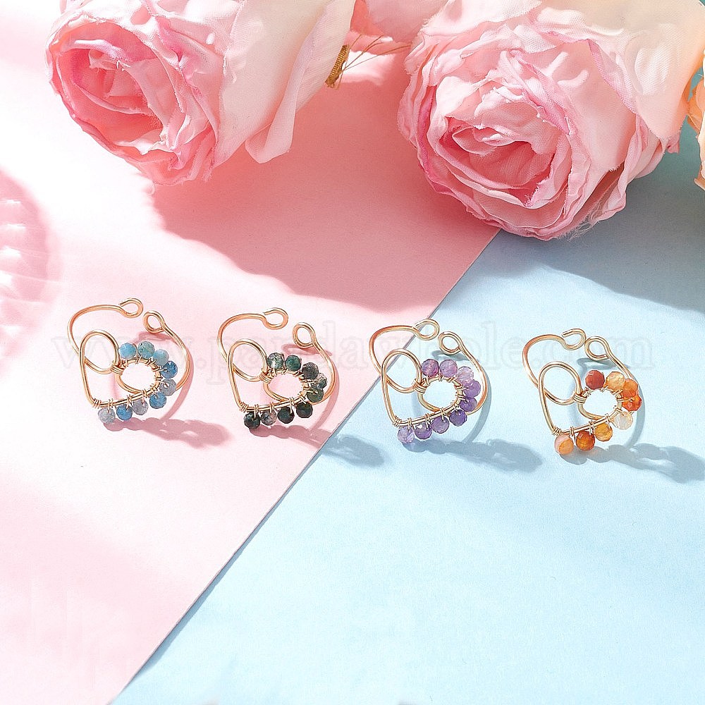 Кольца из природного камня из драгоценных камней, сердце, с экологически чистой медной проволокой