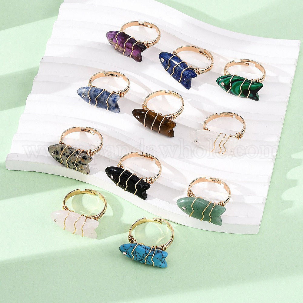 Драгоценные камни, рыба, с латунной фурнитурой со стразами, золотые