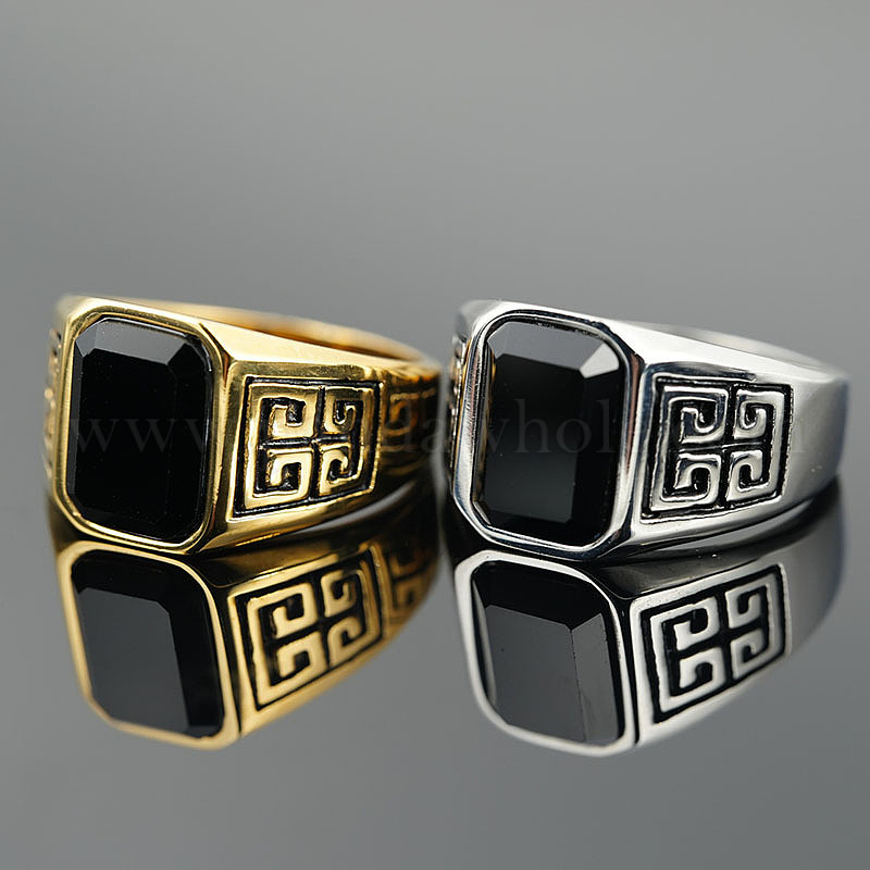 304 Кольца из нержавеющей стали и обсидиана для мужчин, прямоугольные