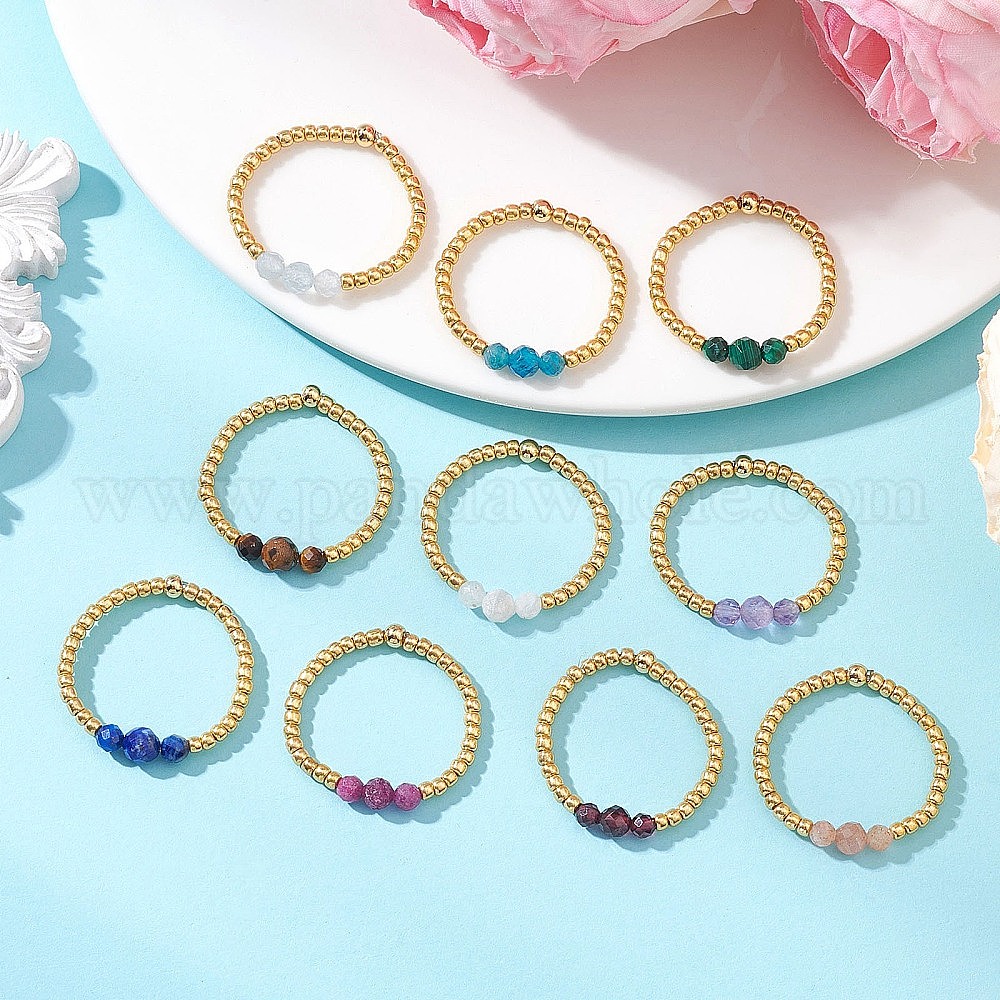 Регулируемые кольца перста природных драгоценных камней, со стеклянными бусинами, стрейч-кольца