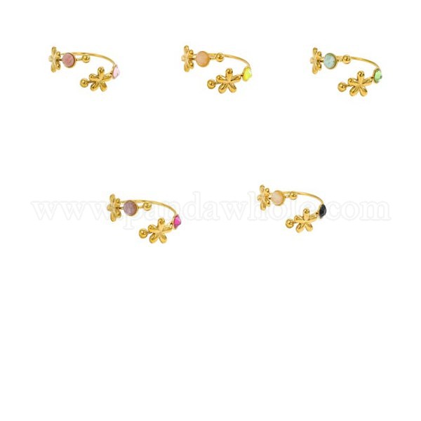 • (52) Непрозрачная лаванда 304 Кольца-манжеты из нержавеющей стали с натуральными драгоценными камнями и кубическим цирконием для женщин, двойной цветок, ионное покрытие (ip), долговечный, реальный 18 k позолоченный, 18 мм, разноцветные, 18 мм
