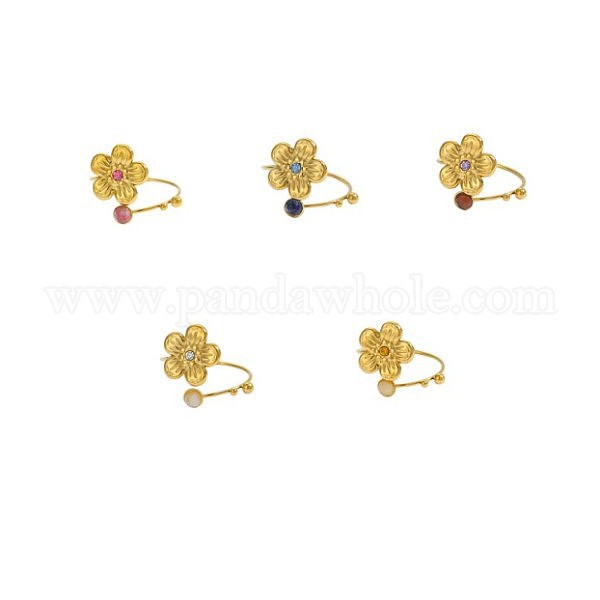 304 Кольца-манжеты из нержавеющей стали с натуральными драгоценными камнями и кубическим цирконием для женщин, цветок, ионное покрытие (ip), долговечный, реальный 18 k позолоченный