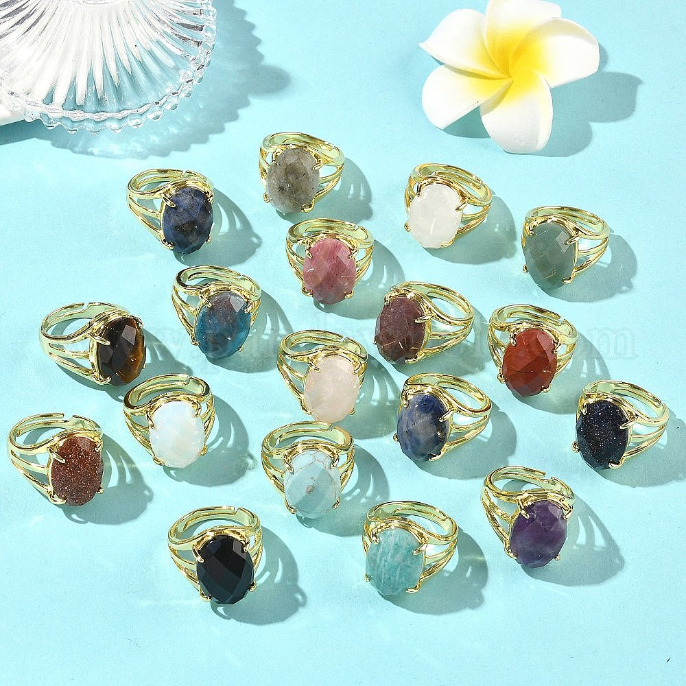 Латунные манжеты с открытыми кольцами, С камнями, овальные, граненые, стойки покрытие, долговечный, золотые