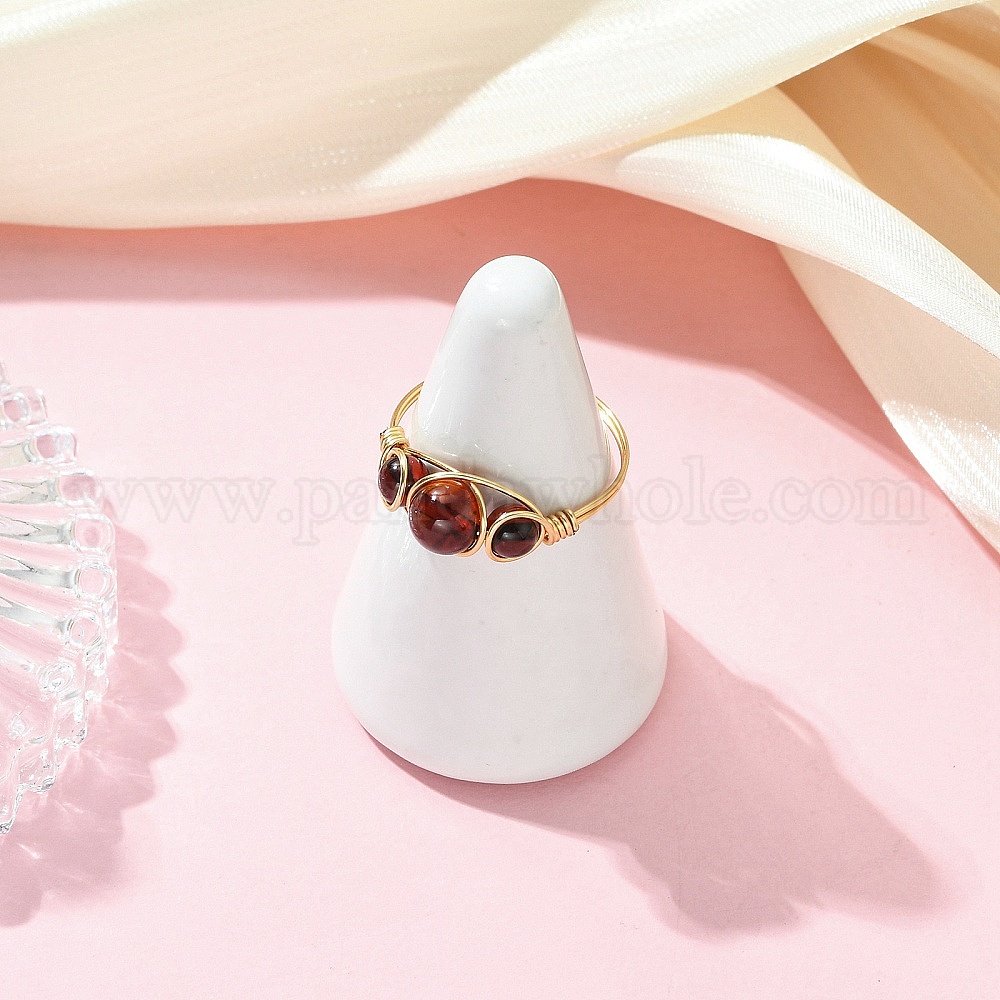 Кольца на палец из натуральных янтарных бусин, круглые, с экологически чистой медной проволокой, золотые