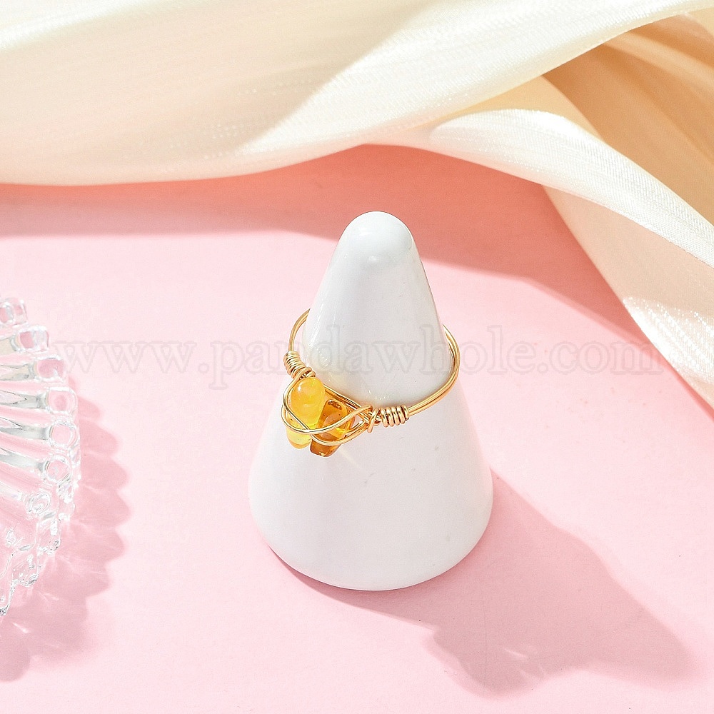 • Золотой Кольца на палец из натуральных янтарных бусин, с экологически чистой медной проволокой, золотые, 10~11 мм, размер США 8 1/2 (18.5 мм)