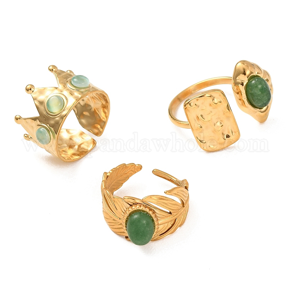 Открытые кольца-манжеты из латуни с натуральным драгоценным камнем для женщин, золотые