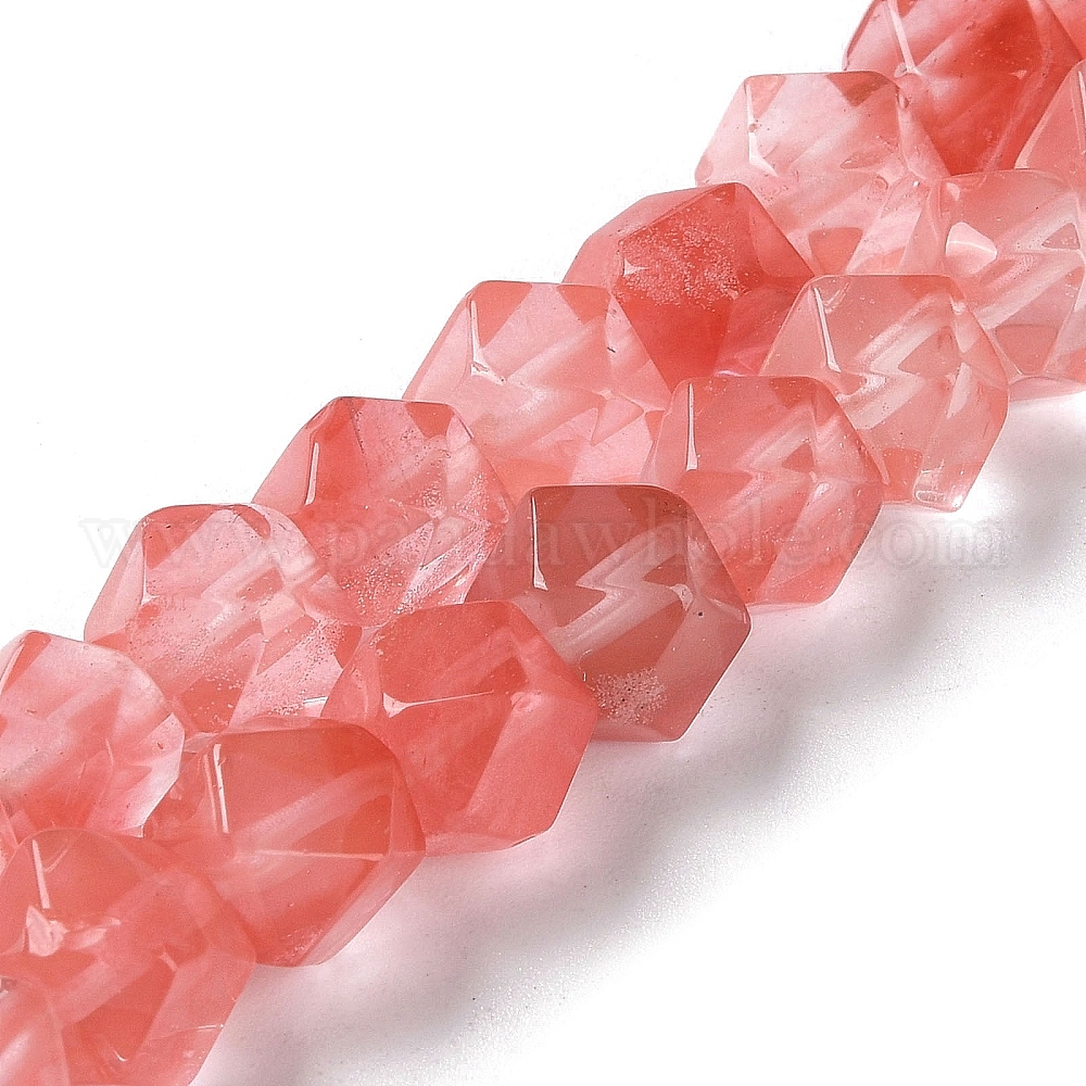 Нити круглых бус из кварцевого стекла вишневого цвета в форме звезды, граненые