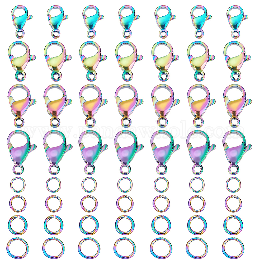 40 шт. 4 стиль ионное покрытие (IP) радужного цвета 304 застежки-лобстеры из нержавеющей стали, с 40 соединительными кольцами (02DX9Z)