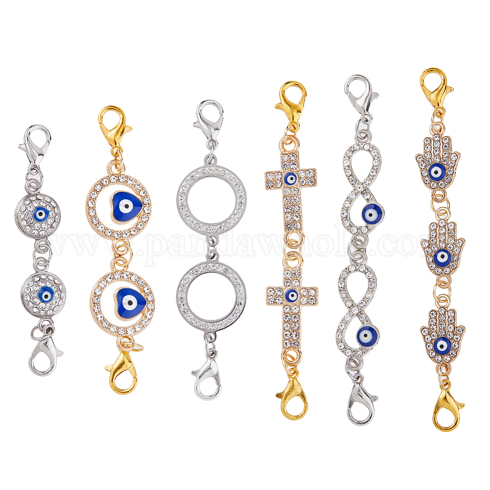 2 наборы 2 цвета цинковый сплав кристалл горный хрусталь двойной карабин застежки, кольцо и плоская круглая и бесконечная синяя застежка-застежка-лобстер от сглаза