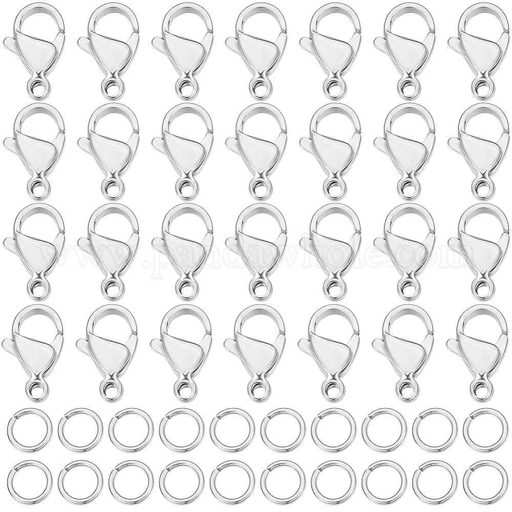 100шт 304 застежки-карабины из нержавеющей стали, с 100 шт. 304 соединительными кольцами из нержавеющей стали, для изготовления ювелирных изделий своими руками