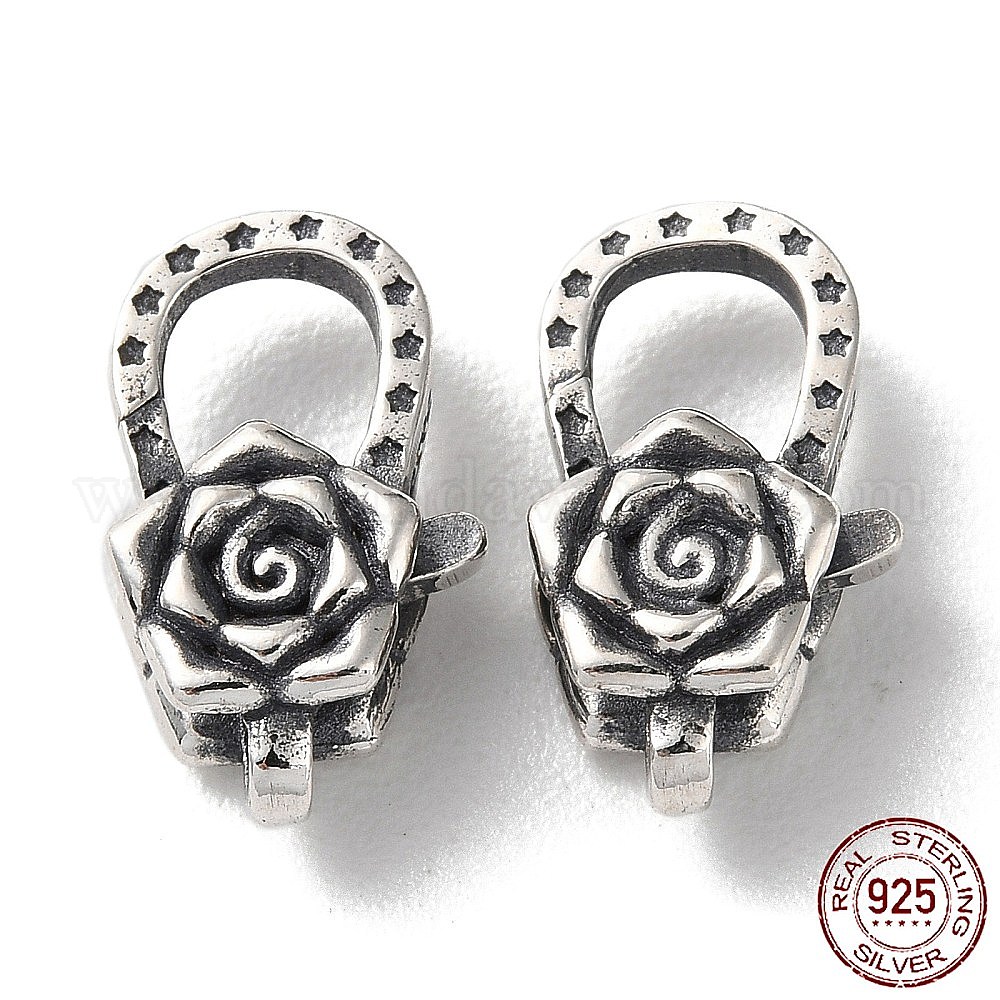 925 застежки-когти из таиландского стерлингового серебра, цветок розы, с печатью 925