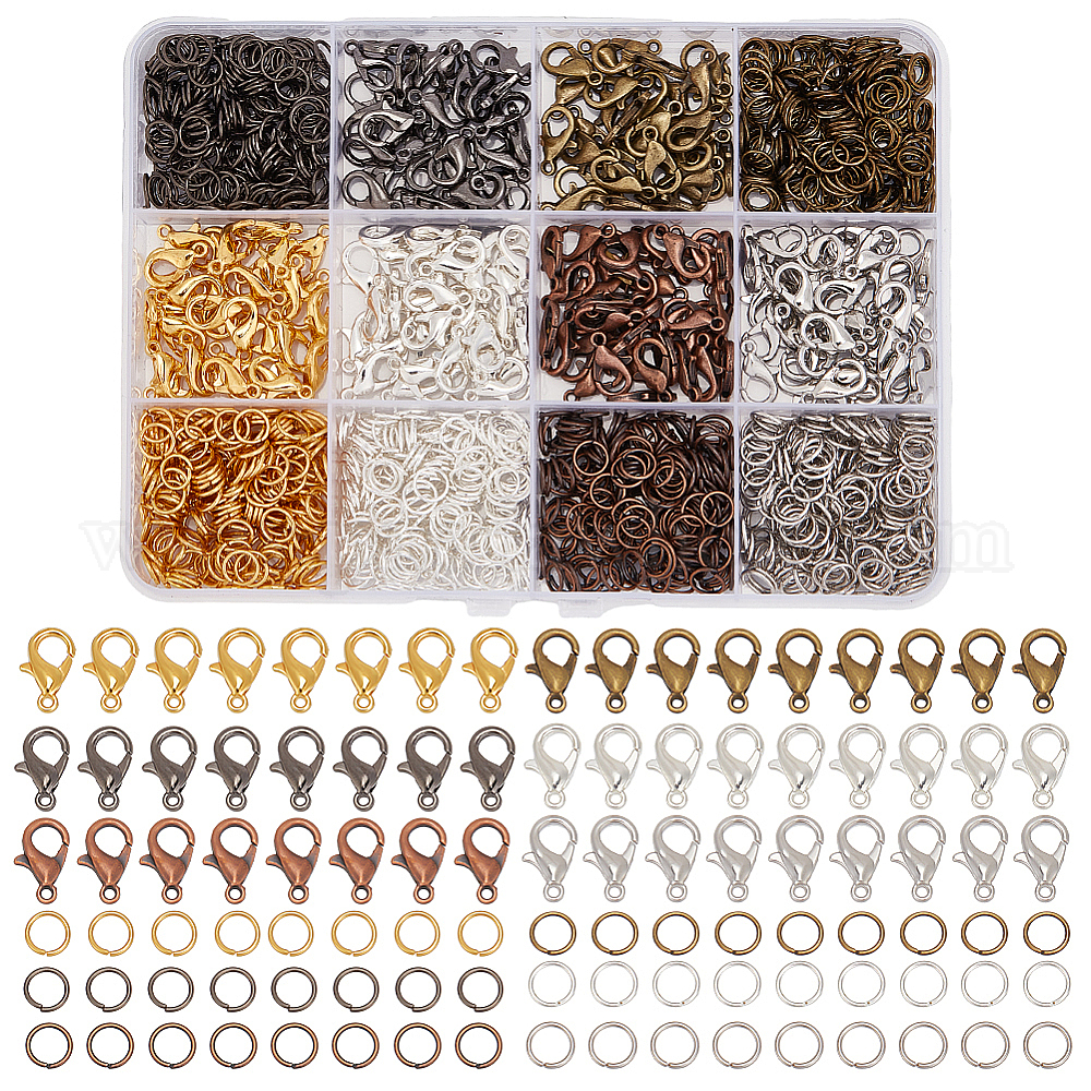 180 шт. 6 цветные застежки-карабины из цинкового сплава, с 1200 железными открытыми прыжковыми кольцами