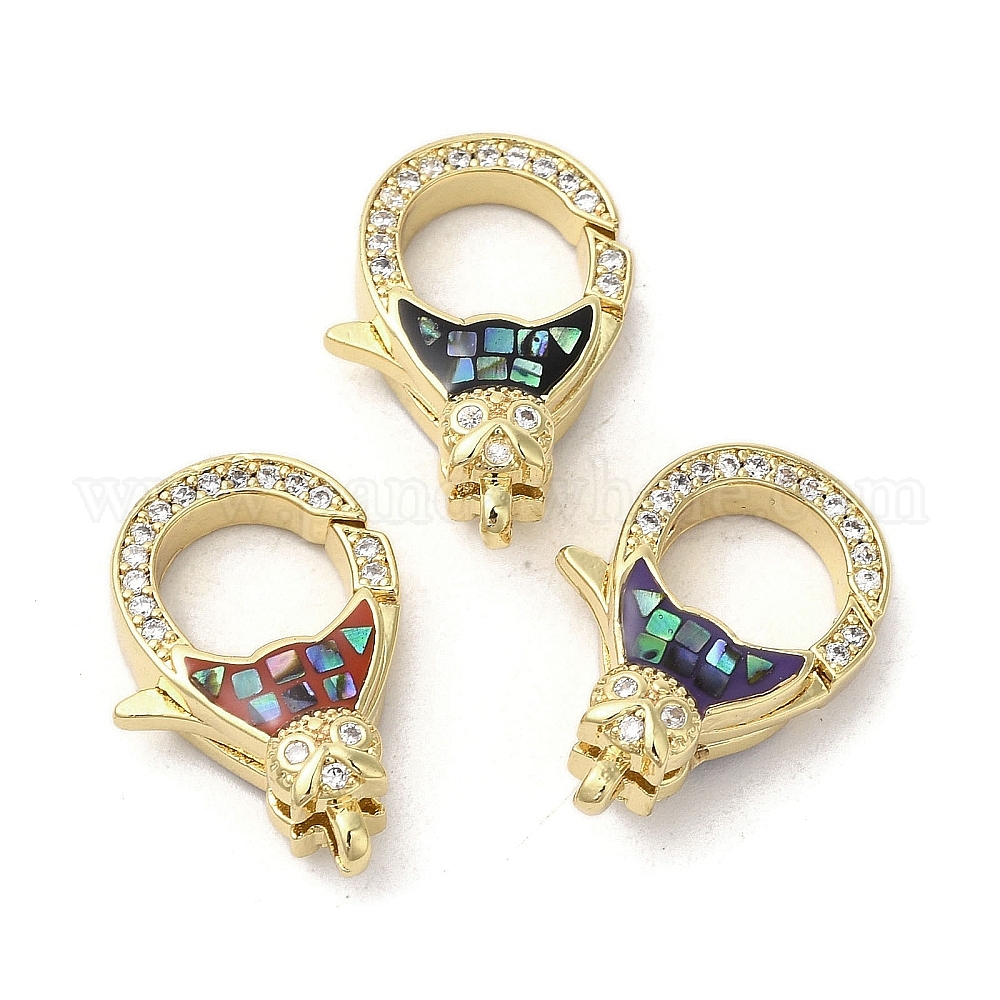 Латунный микро pave прозрачный кубический цирконий лобстер, с эмалью и ракушкой, долговечный, без свинца и без кадмия, реальный 18 k позолоченный