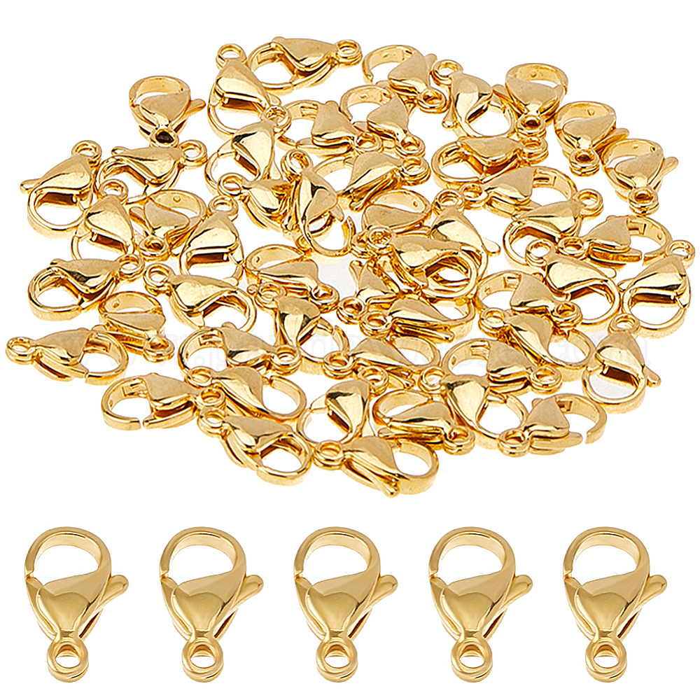 • Настоящее золото 24K 50 вакуумное покрытие PVD 304 карабины из нержавеющей стали, застежки на спусковой крючок, ручная полировка, класс А, реальный 24 k позолоченный, 11x7x3.5 мм, отверстие : 1.2 мм