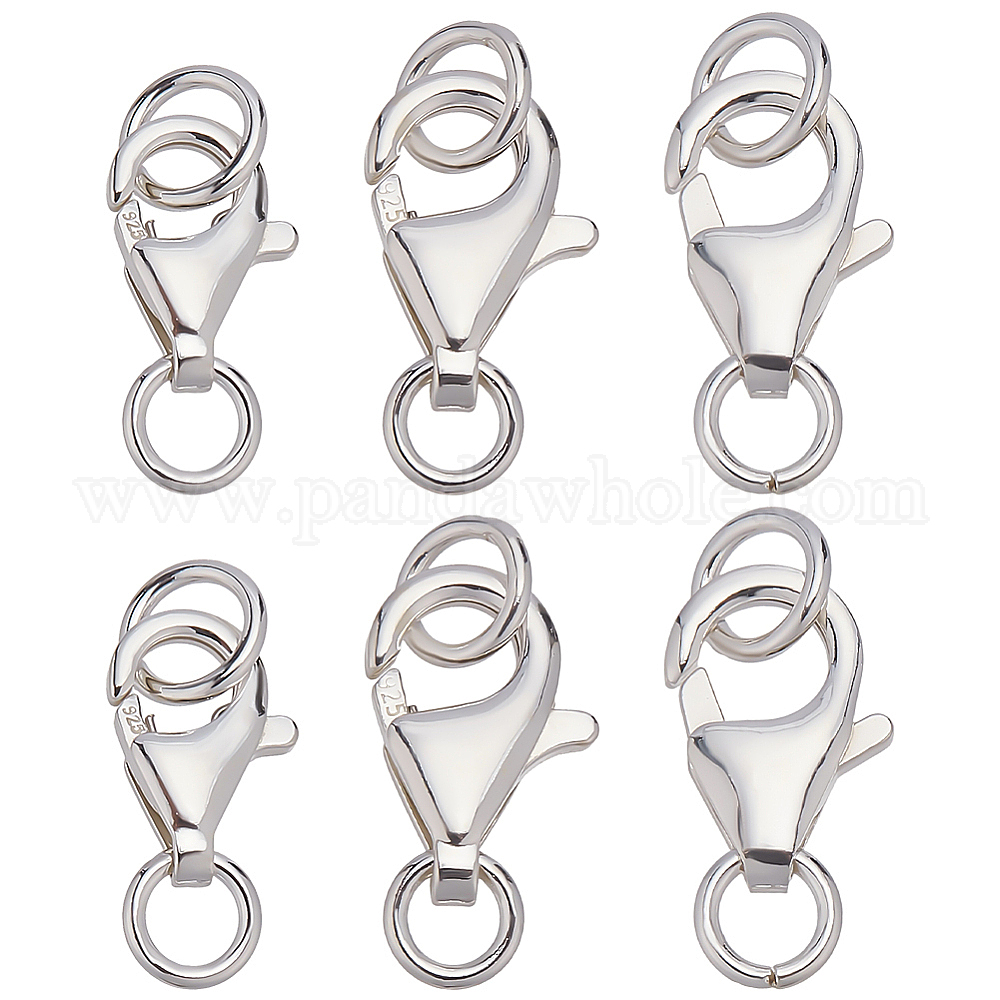 6 шт. 3 стили 925 застежки-лобстеры из стерлингового серебра, с прыжковых колец