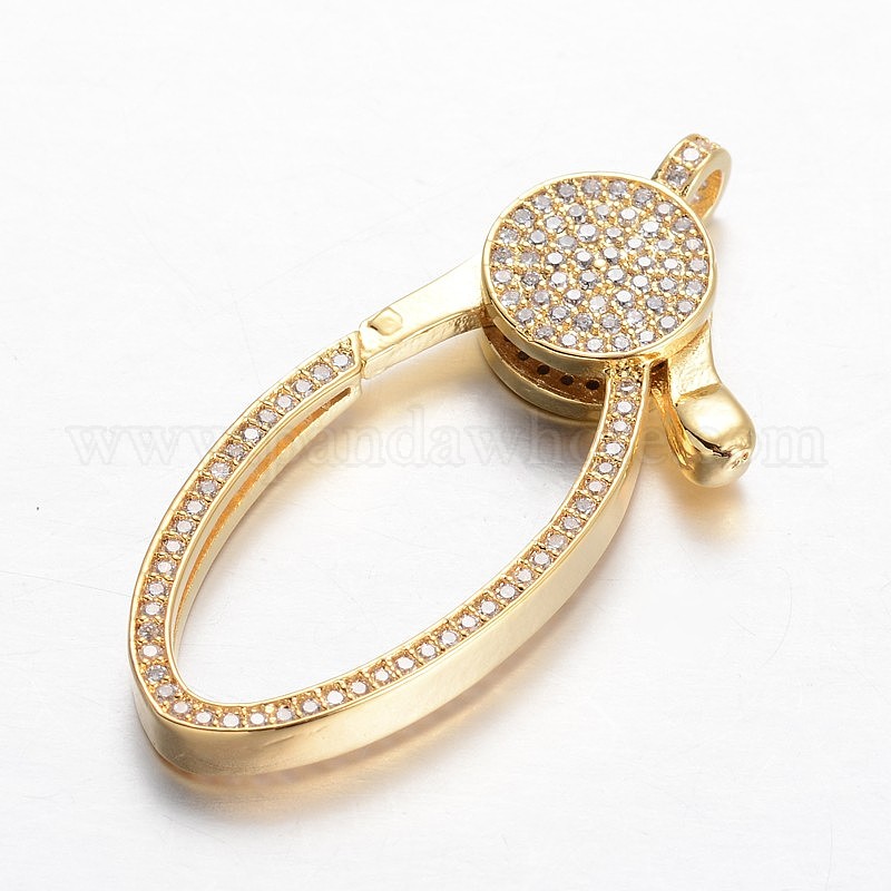 Овальные латунные микро проложить кубического циркония когтя омара застежками, 43.5x18x5 мм, отверстие : 3 мм