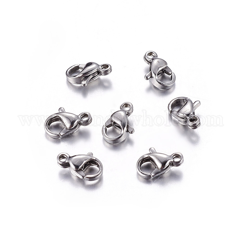 • Нержавеющая Сталь Цвет 304 нержавеющая сталь застежка когтя омара, цвет нержавеющей стали, 15x9x4 мм, отверстия: 2 мм, около 100 шт / коробка